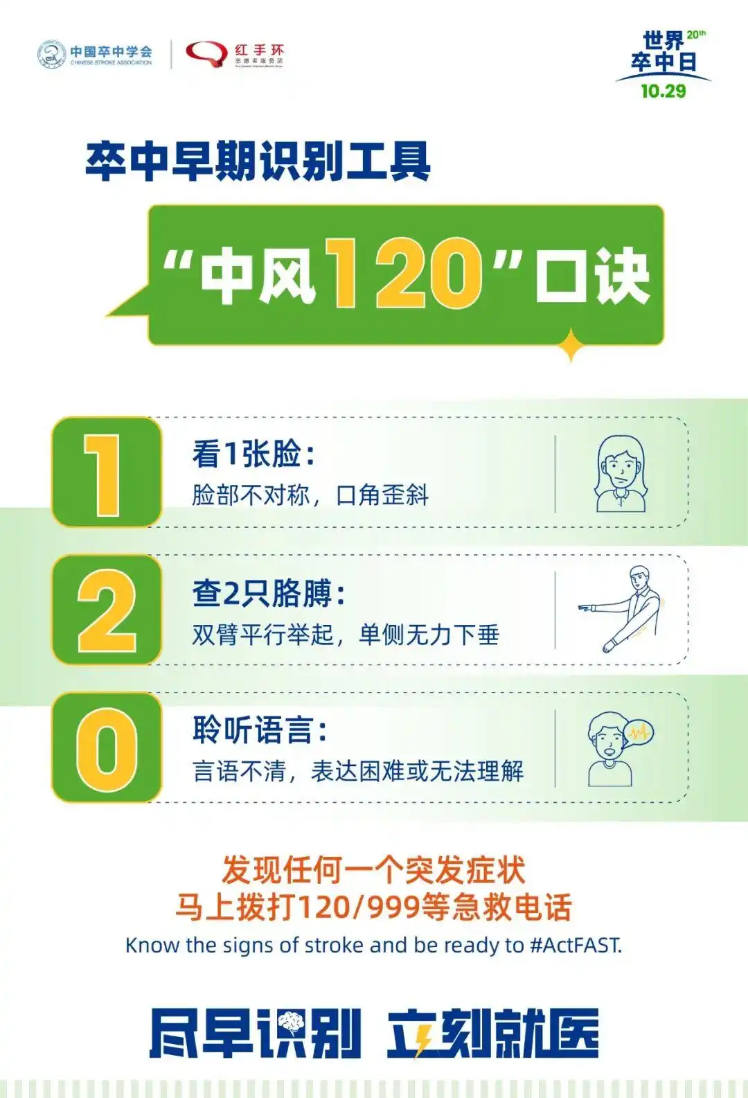 除了当心“记忆小偷”,秋冬季还要警惕“大脑杀手”,29日恰逢世界卒中日,今年的主题是“尽早识别,立刻就医!”