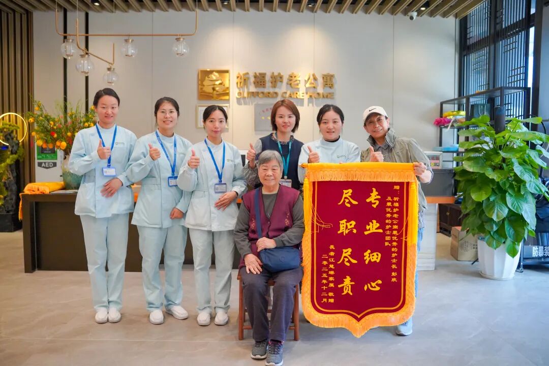 美娜姐与江阿姨给护老公寓送来锦旗